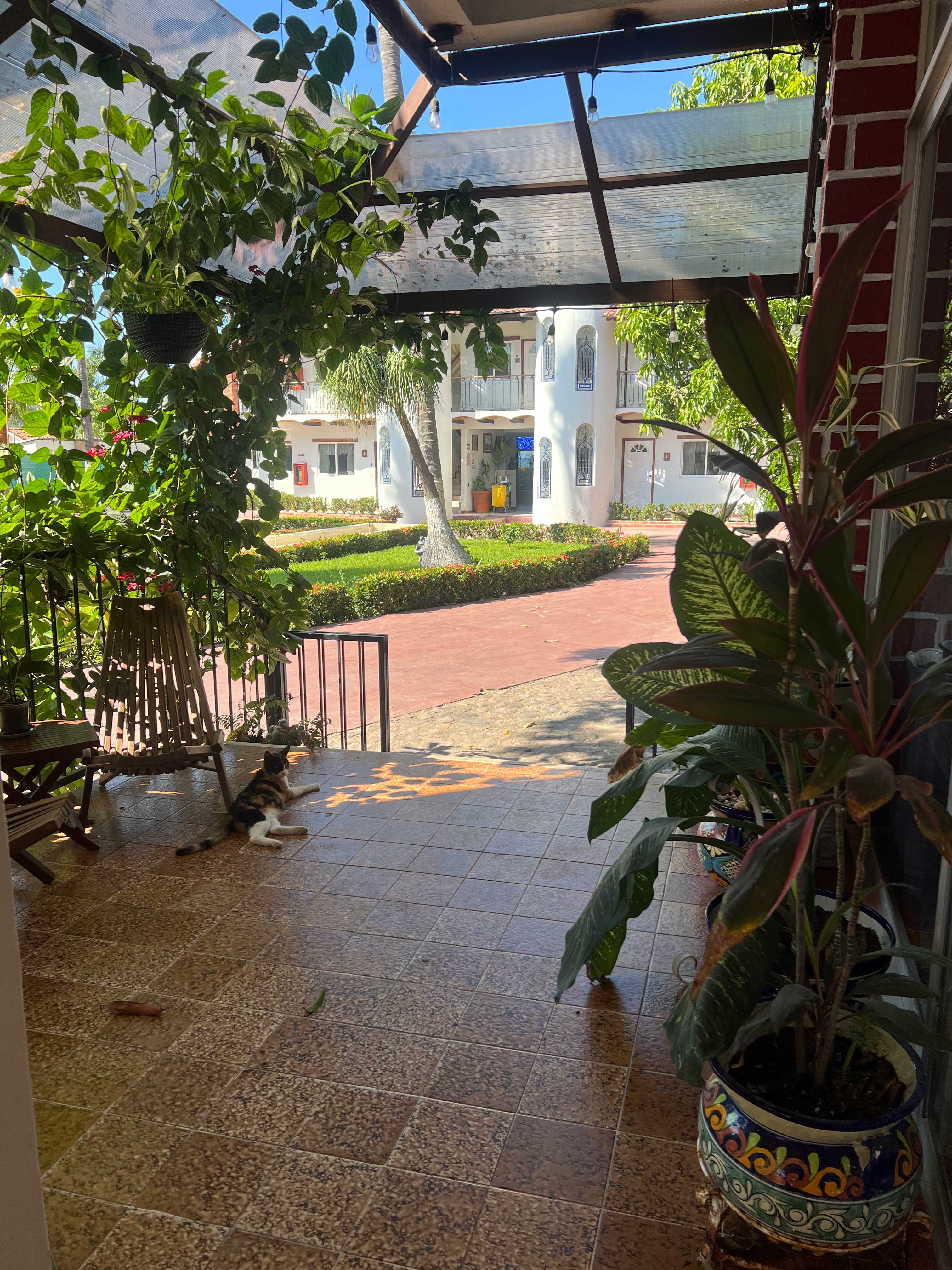 Desde el cuarto, podrás disfrutar de una vista encantadora de la terraza común, un espacio compartido que se conecta con el paisaje exterior. Las grandes ventanas permiten la entrada de abundante luz natural y ofrecen vistas directas a la terraza, donde podrás ver el exuberante jardín y la proximidad a la playa. La terraza es un lugar ideal para relajarse y disfrutar de la brisa marina.